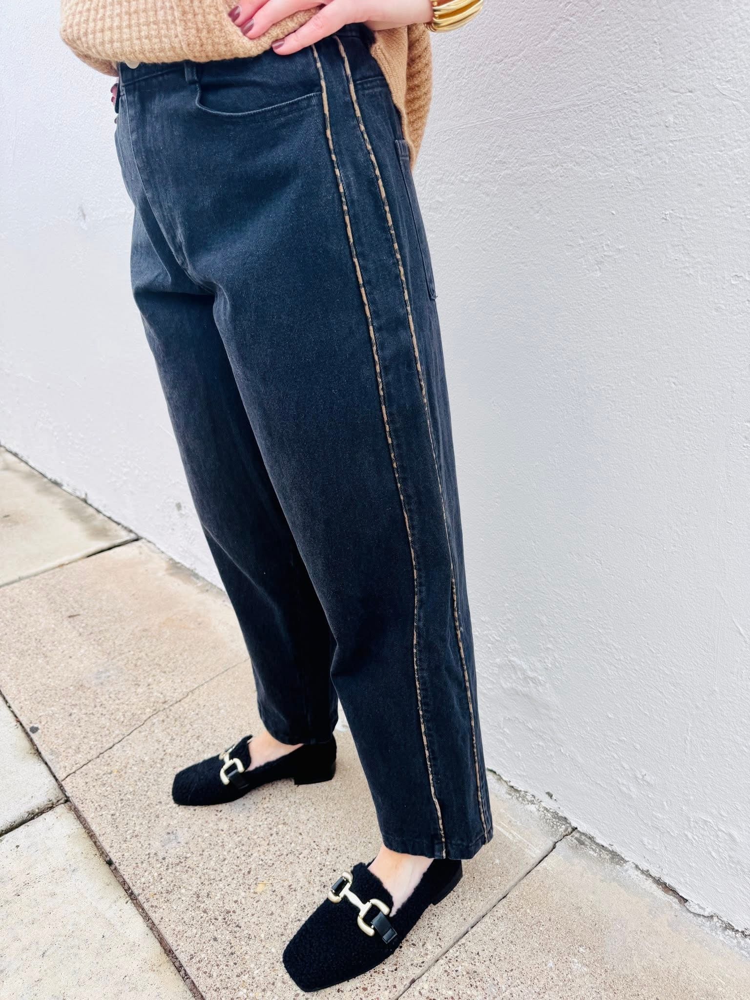 Add a fierce twist to your denim collection with these bold and stylish barrel jeans. Designed to turn heads, the subtle leopard piping down each side brings just the right amount of edge, while the flattering fit keeps things chic and modern.