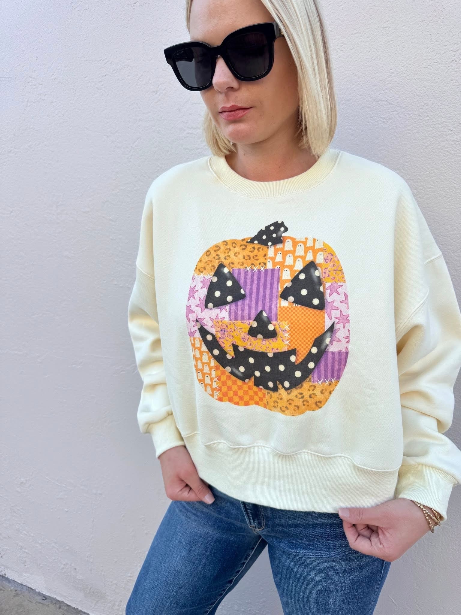 Celebrate the spooky season in style with the Patchwork Jack O Lantern Crop Sweatshirt. Featuring a playful patchwork design of classic jack-o'-lantern faces, this cozy crop sweatshirt adds a festive touch to your Halloween wardrobe. Perfect for crisp autumn days, it combines comfort and seasonal charm for a fun, casual look.