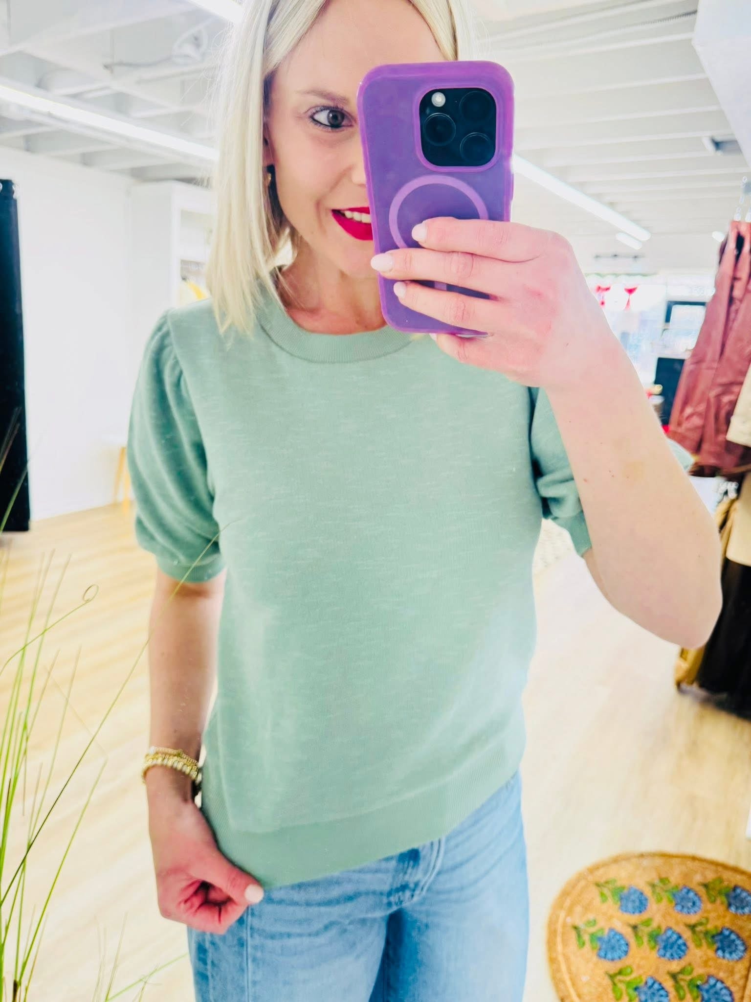 Give your outfits a posh finish with this feminine top. A crew neckline leads to short, puff sleeves and a flattering fit bodice. The top comes with a stretchy waistband attached to the hem, ensuring the perfect fit.
