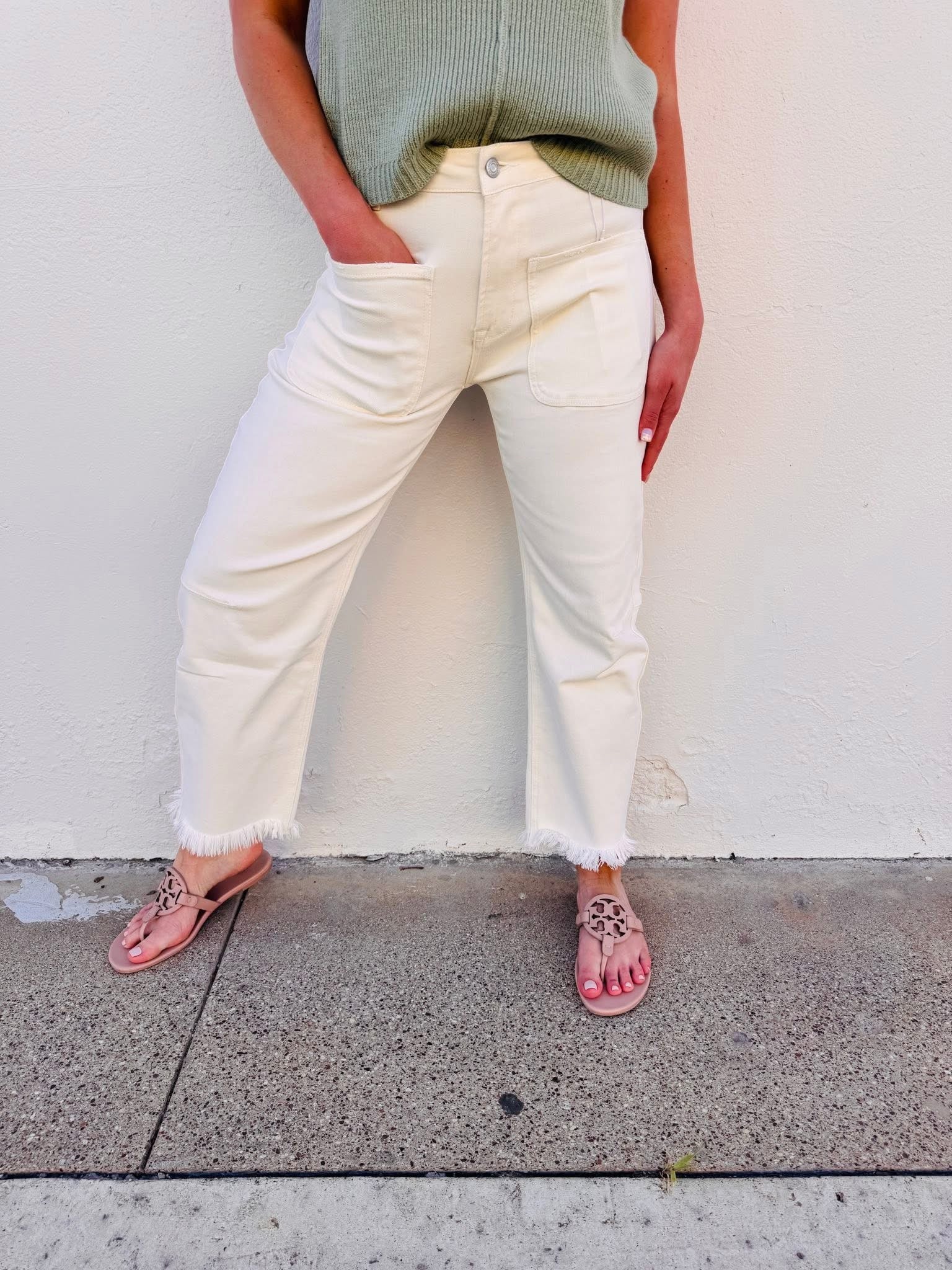 Say hello to your new bestie! The Kate Barrel Denim is a hot wonder featuring playful raw hems and convenient side patch pockets. With its fun seamed knee detailing, high-rise fit, and practical back pockets, these jeans are ready for all your adventures! The perfect everyday denim that'll have you doing twirls!