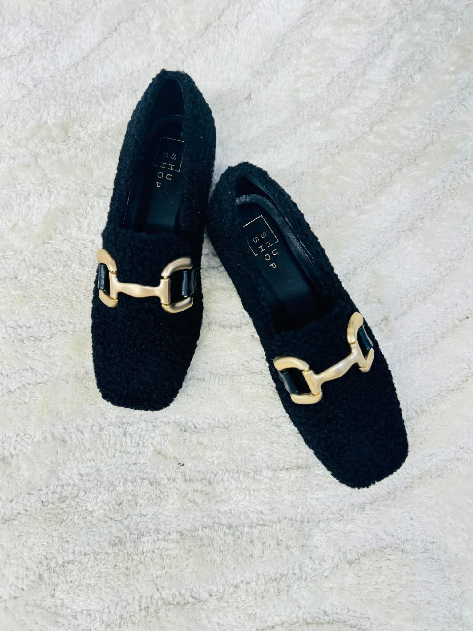 Experience unmatched comfort and style with our Therese loafers. Crafted from high-quality faux leather and sherpa, these loafers feature a soft, textured finish, a chic metal buckle, and a sturdy low-block heel. Perfect for adding a cozy, elegant touch to any outfit, they're designed for all-day comfort.